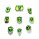 • 1 x set of nine Dragon Eye polyhedral dice in the 'Regal', sharp edged finish - Green